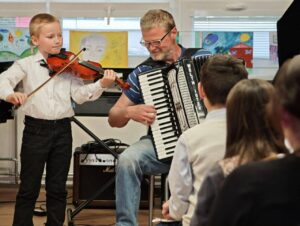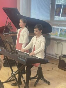Na pódiu sa predstavili naši žiaci spolu so svojimi súrodencami, rodičmi a ďalšími členmi rodiny, a práve toto krásne rodinné prepojenie vytvorilo veľmi príjemnú, srdečnú a skutočne rodinnú atmosféru. Bolo vidieť, že hudba dokáže spájať generácie, upevňovať vzťahy a vytvárať spoločné zážitky, na ktoré sa nezabúda.
