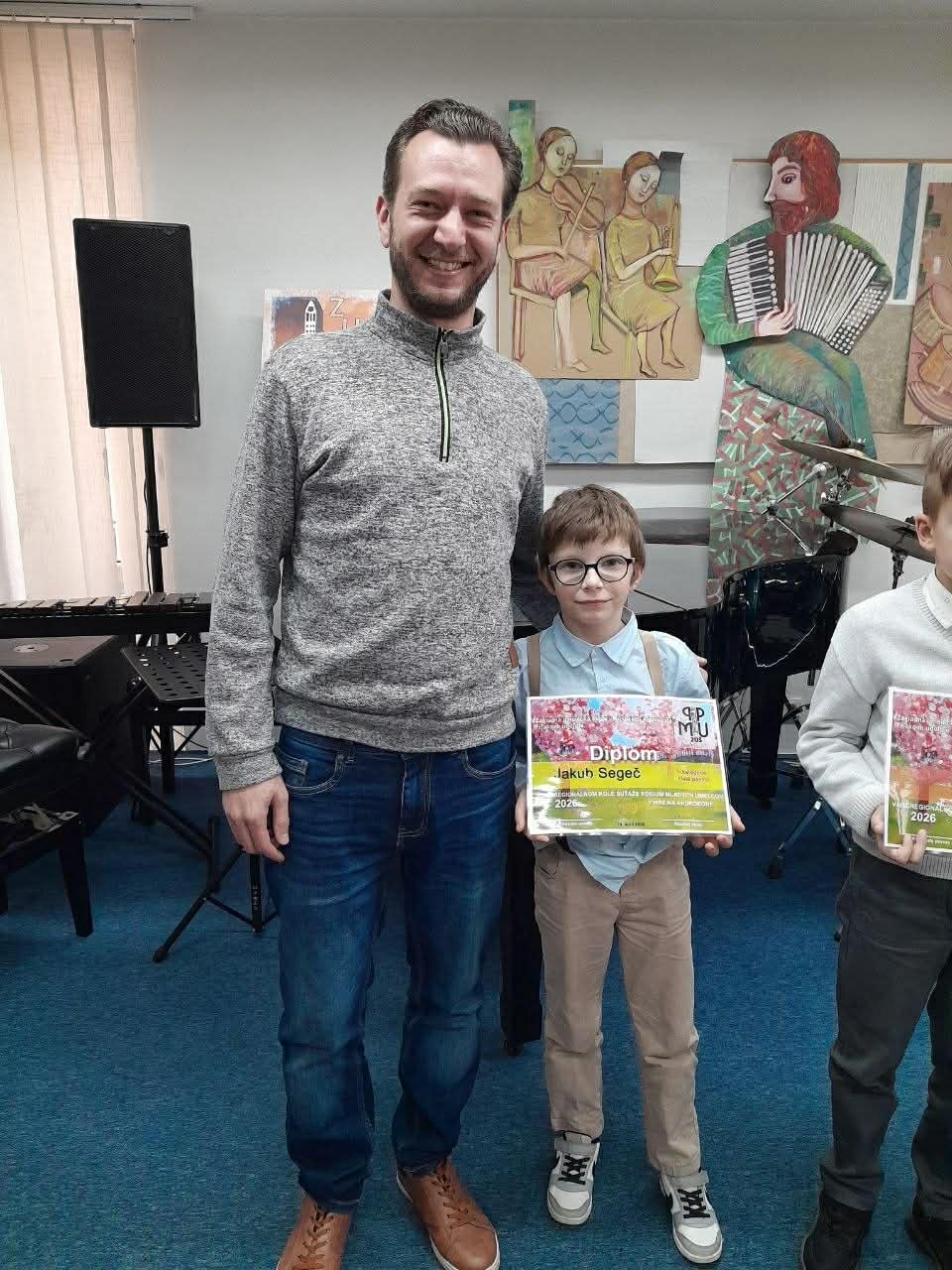 Dňa 16. 4. 2026 sa naši žiaci zúčastnili nadregionálnej súťaže PMU Akordeón a bicie, ktorá sa konala vo Fiľakove, a dosiahli krásne výsledky: