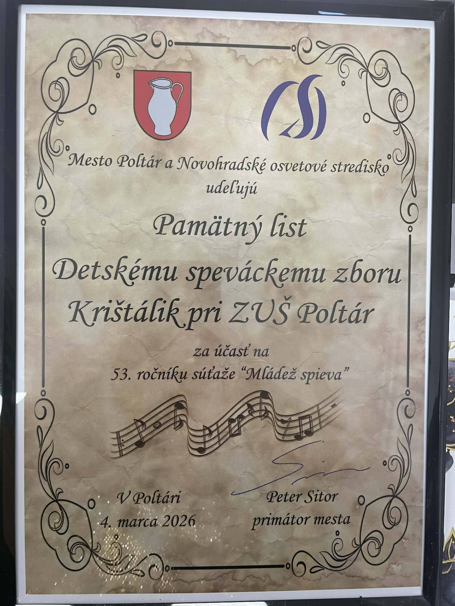Dňa 4. marca 2026 sa náš detský zbor Krištálik zúčastnil regionálneho kola 53. ročníka celoštátnej postupovej súťaže a prehliadky detských a mládežníckych speváckych zborov Mládež spieva.